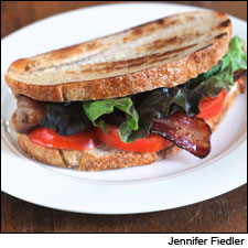 Sometimes cooking well isn't so much about how you transform the ingredients, but rather how well you piece together what's in your shopping cart. Like many sandwiches, the key to the classic B.L.T. lies in bringing together the best ingredients, mixing contrasting flavors and textures. Find a good tomato, some well-made bacon and a solid loaf of bread and you’re basically rounding third and heading for home. For extra panache, however, consider the little luxury of homemade mayo.