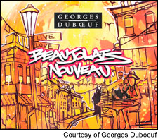 • The Beaujolais Nouveau has arrived, and this year it came in a Cadillac. A large 1970s-era Cadillac, covered in graffiti, specifically, at the Georges Duboeuf Nouveau unveiling in Manhattan last night at the stroke of midnight, during an evening of Beaujolais wines, art and, for good measure, breakdancing. Beaujolais Nouveau, the freshly fermented Gamay wine released the third Thursday of every November, is as much about style as it is about grapes, so it makes sense that Georges Duboeuf chose to showcase this year's wine in the United States with an art label, as they often have in the past. And, much like Caves de Tain recently did, Duboeuf chose a graffiti artist to fashion it, a Brooklyn-based guy who goes by the name Kaves. "The idea was to combine his own experience with our style of wine," said Franck Duboeuf at the event. The label, which depicts a bistro street scene (but all graffiti-like) is intended to "make the link between the French approach and the more trendy Brooklyn culture." Peter Deutsch, who imports the wine, explained that "the package has always been an integral part of [Nouveau's] success," but in case you were wondering, Kaves also endorses the stuff in the bottle. When the winery approached Kaves, Duboeuf said, "first, he wanted to taste." In promoting the happy union of wine and art, Duboeuf also sponsored the "Be Heard" art contest, winner of which received $1,000 and a free trip to New York (though winner Rebecca Suriano, who paints wineglasses with trippy nature scenes, lives just a hop away in New Jersey anyway). Kaves himself works in multiple media, including music and tattoos, but Unfiltered must report that there are currently no plans to develop a Beaujolais Nouveau tattoo (this year). But even if you missed the release party (or today's Nouveau festivities elsewhere; the mayor of Annapolis is delivering the juice to town by boat). Before you pick up a bottle, check out our recommendations.