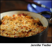 4. Mix the breadcrumbs with 1/4 cup cooking oil, such as safflower or olive oil, and a pinch of salt, and then sprinkle over the top of the cassoulet. Bake in the oven for 15 minutes, or until the tomato liquid comes to a light boil and the breadcrumbs are browned. Serves 4.