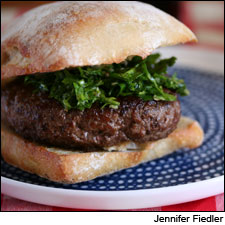 5. To serve, assemble the burgers on the ciabatta rolls with 1 to 2 tablespoons of the parsley mixture on top. Serves 4.