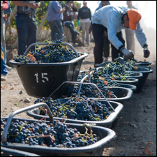 Harvesting Cabernet Sauvignon for Chile's Concha y Toro.