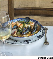 Begin the meal with seafood antipasti or tapas before moving on to pasta dishes such as Andreini's take on Sardinian fregula. This traditional couscouslike dish is prepared like risotto and features an explosion of flavors from the capers, sweet peppers and fennel, as well as toppings of grilled octopus and squid-ink breadcrumbs. Next, try Andreini's perfectly spiced tomato-based seafood soup, or meat dishes such as Cannonau-stewed mutton. Cheese aficionados come for the impressive selection sourced from shepherds across the island.